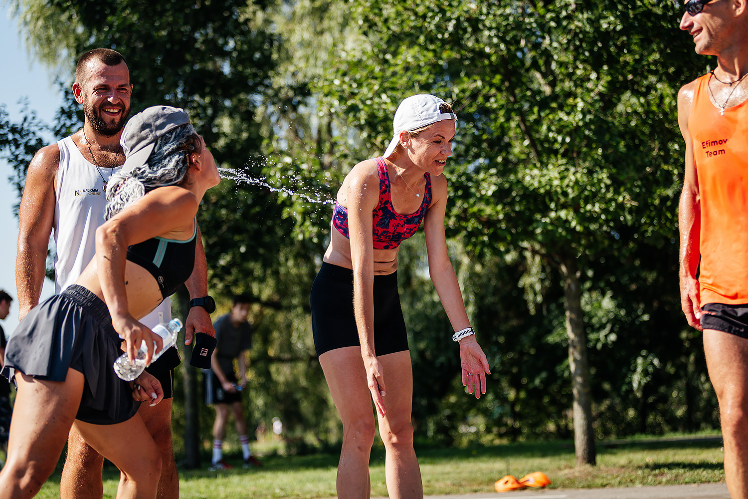 Лёгкое обливание водой или увлажнение головы, шеи, рук помогает быстрее охлаждать тело. Некоторые бегуны смачивают кепку или майку водой перед стартом. Ещё один лайфхак — взять с собой компактную бутылку-спрей или маленькую губку, чтобы периодически охлаждать кожу во время длительного бега.